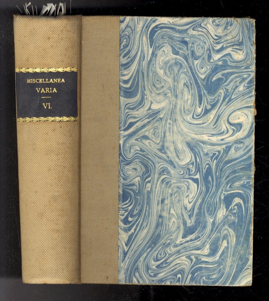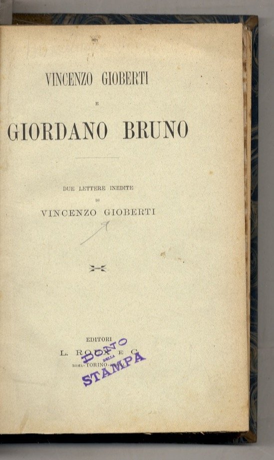 GIOBERTI V. Due lettere inedite a Luigi Ornato. Pubblicate da G. C. Molineri. Torino, L. Roux, pp. 35. (Unito:) POZZOLINI A. La donna e l'arte. Cenni sulla vita intima di Carlo Markò. Firenze, Tip. Galileiana, 1867, pp. 13. Estratto. (Unito:) INZOLI L. Gravitazione o Ripulsione Universale? Indagini e deduzioni. Milano, Palma, (1913), pp. 62, (2). (Unito:) GELMINI A. I capricci nel fanciullo. Bari, Tip. F.lli Pansini, 1884, pp. 26. (Unito:) CALLEGARI G. V. Conoscenze astronomiche degli antichi peruviani. Teramo, A. De Carolis, 1914, pp. 12, (4). Estratto. (Unito:) MOCENIGO A.V.G. La periodicità del massimo e del minimo delle macchie solari ed una supposta marea alla superficie del sole. Vicenza, Tip. Paroni, 1887, pp. 20. (Unito:) PORRO de | Libri antichi e moderni | (Miscellanea).