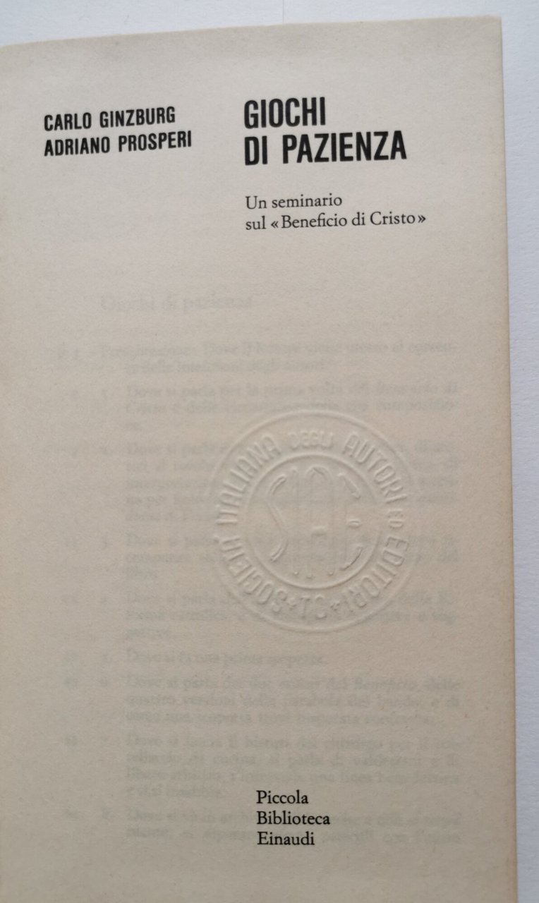 Giochi di pazienza - un seminario sul '' beneficio di Cristo '' | Libri antichi e moderni | Ginzburg, C. - Prosperi, A.