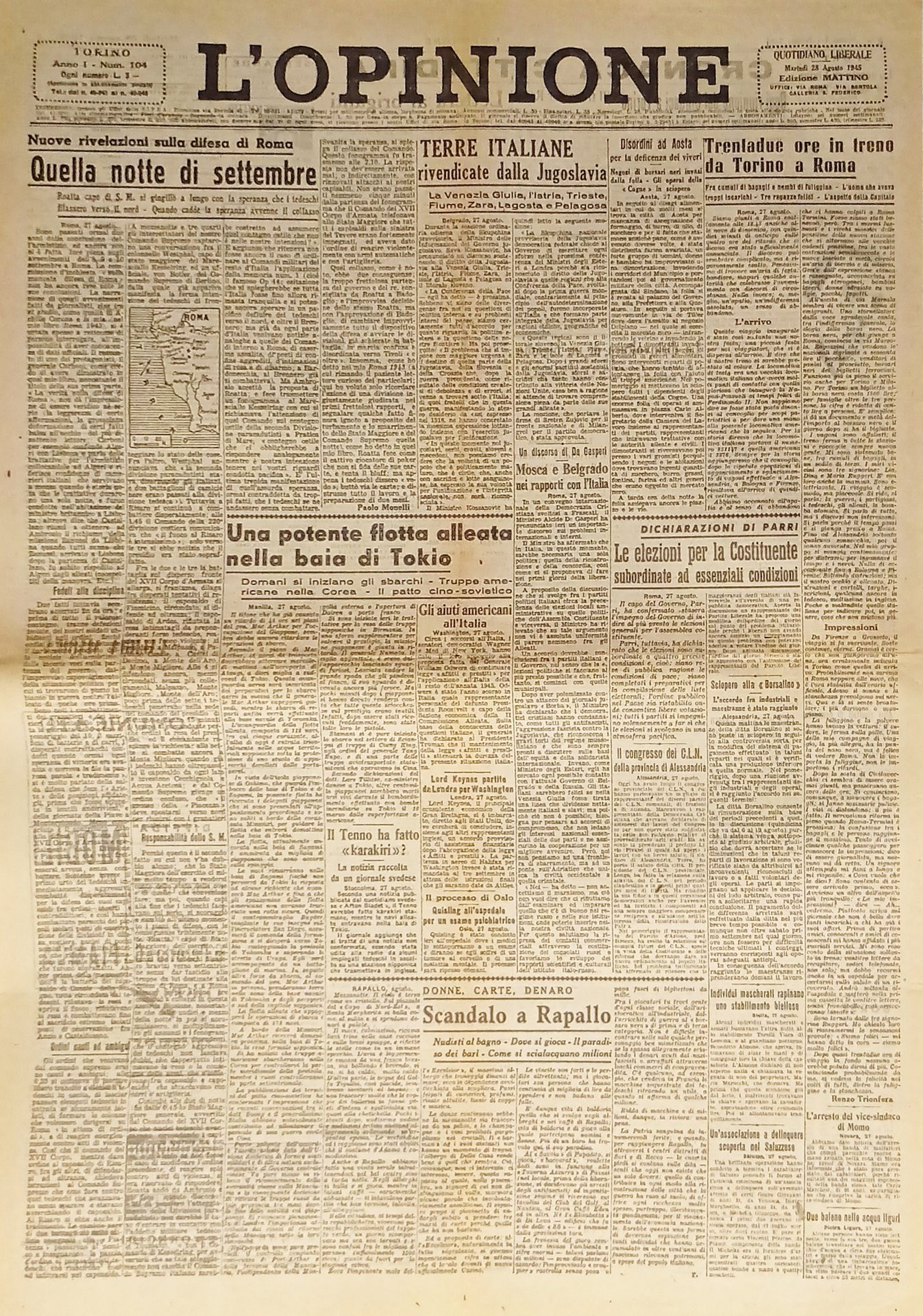 Giornale - L'Opinione N. 104 - 1945 Terre Italiane rivendicate dalla Jugoslavia | Libri antichi e moderni |