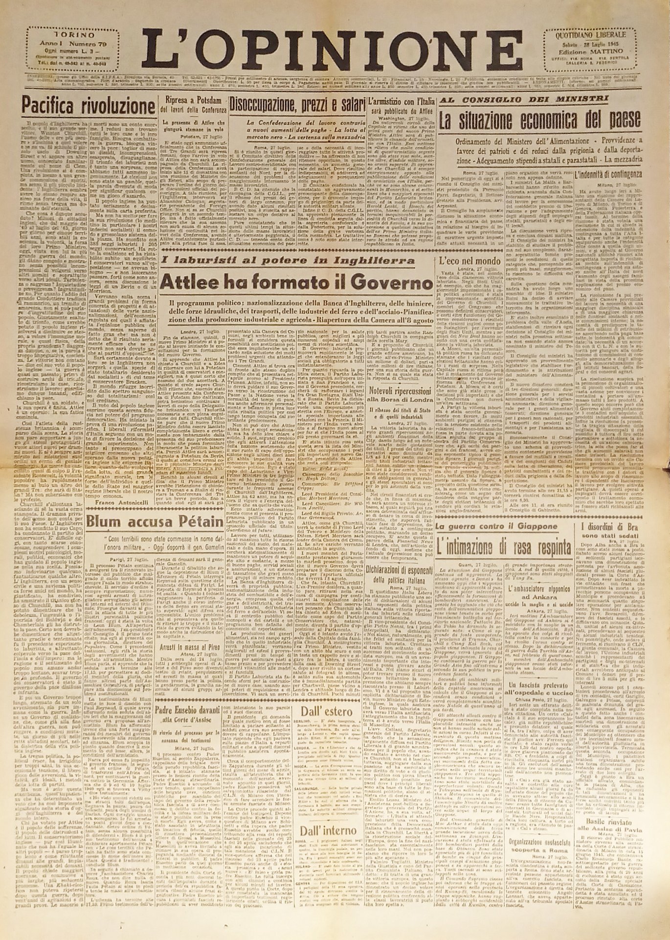 Giornale - L'Opinione N. 79 - 1945 Attlee ha formato il Governo | Libri antichi e moderni |