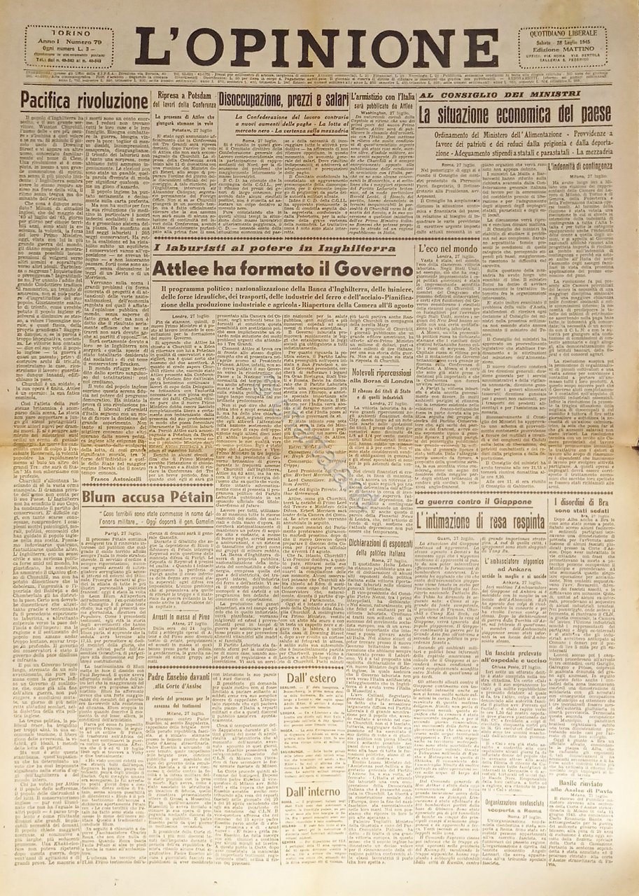 Giornale - L'Opinione N. 79 - 1945 Attlee ha formato il Governo