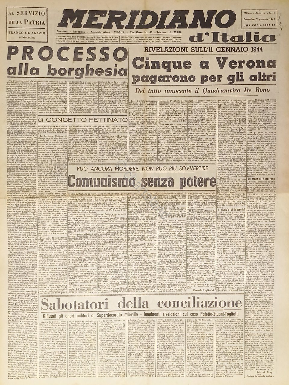 Giornale - Meridiano d'italia N. 1 - 1949 Processo alla borghesia