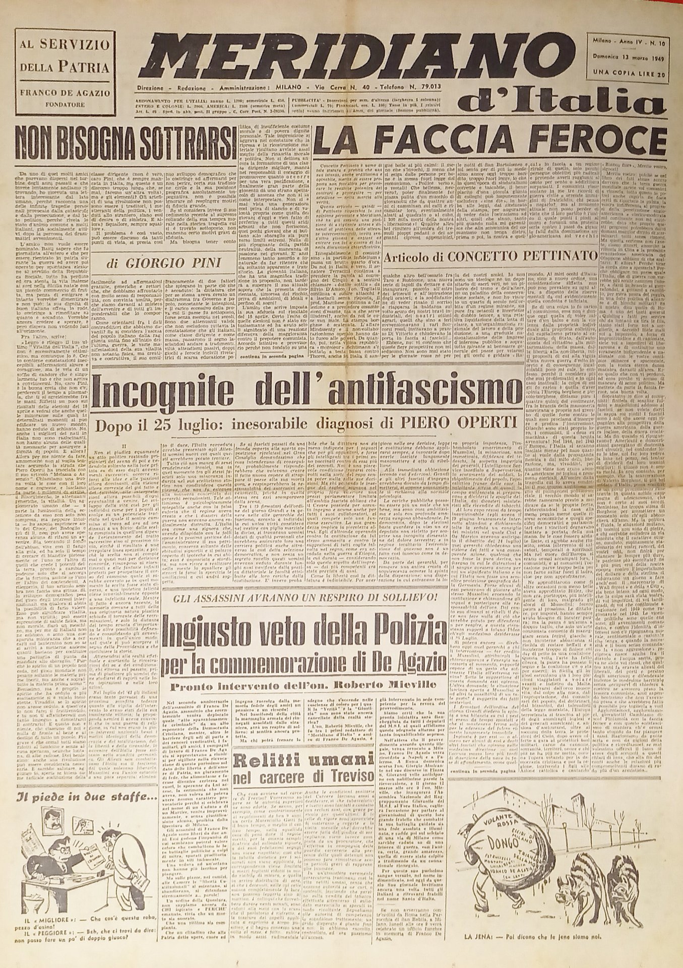 Giornale - Meridiano d'italia N. 10 - 1949 La faccia feroce
