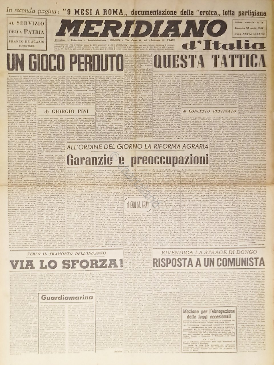 Giornale - Meridiano d'italia N. 16 - 1949 Un gioco perduto