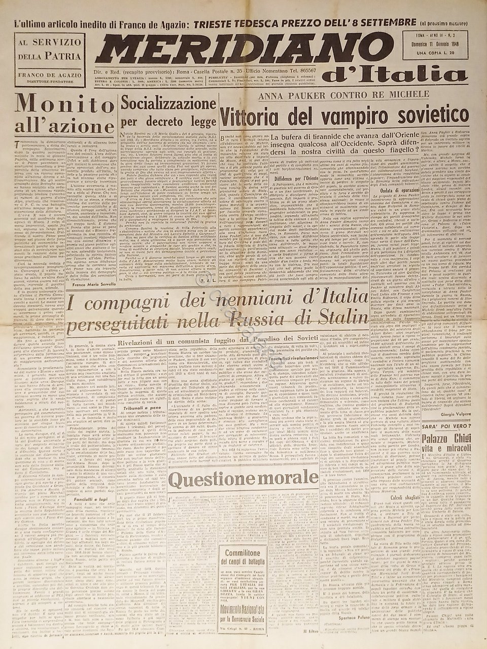 Giornale - Meridiano d'italia N. 2 - 1948 Vittoria del vampiro sovietico