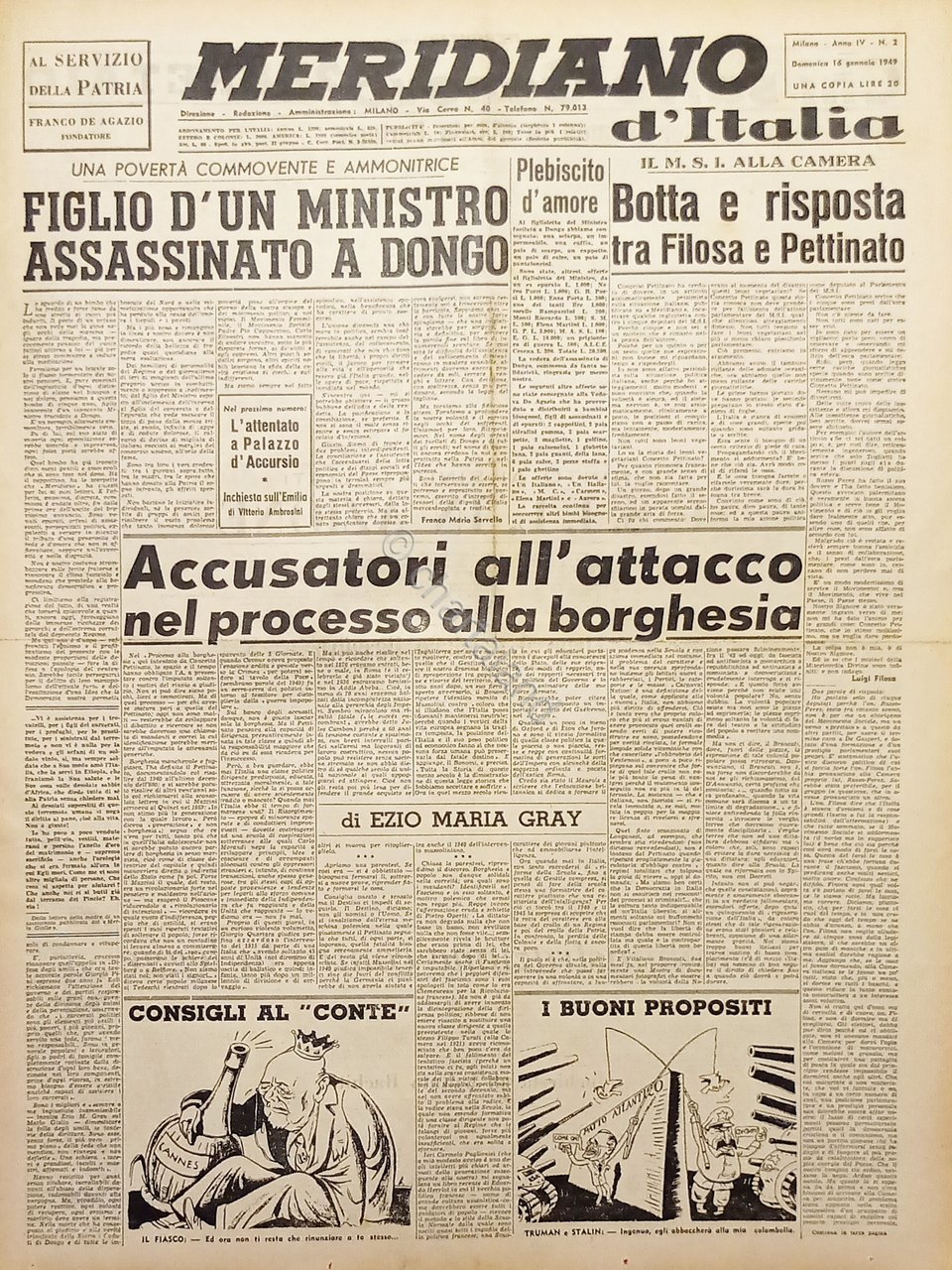 Giornale - Meridiano d'italia N.2 Figlio di un Ministro assassinato a Dongo 1949
