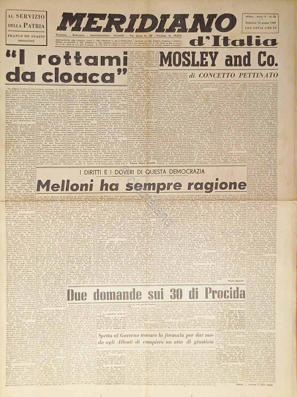 Giornale - Meridiano d'italia N. 23 - 1949 Melloni ha sempre ragione