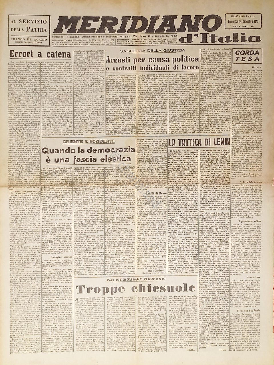 Giornale - Meridiano d'italia N. 33 - 1947 La tattica di Lenin | Libri antichi e moderni |