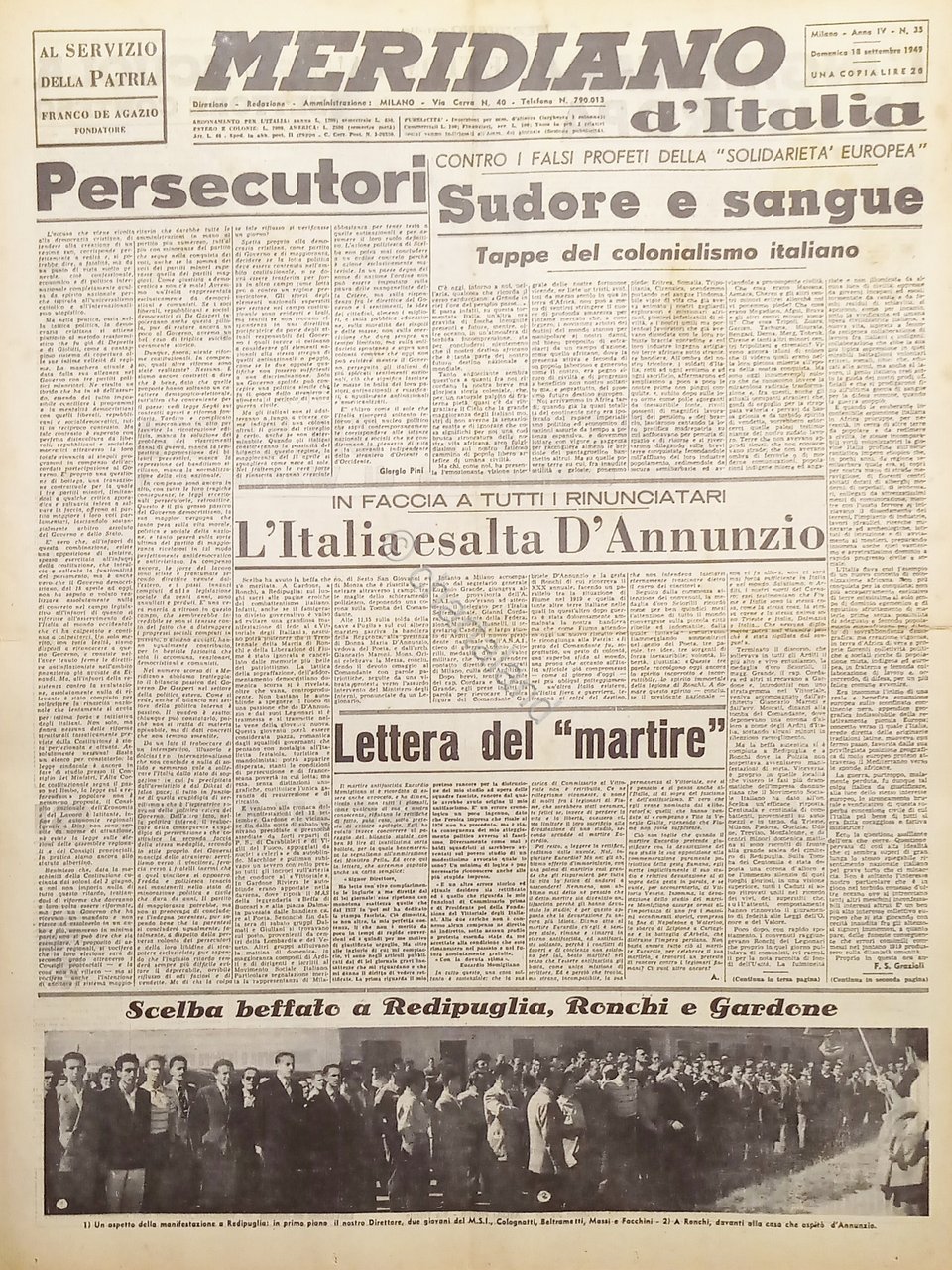 Giornale - Meridiano d'italia N. 35 - 1949 L'Italia esalta D'Annunzio
