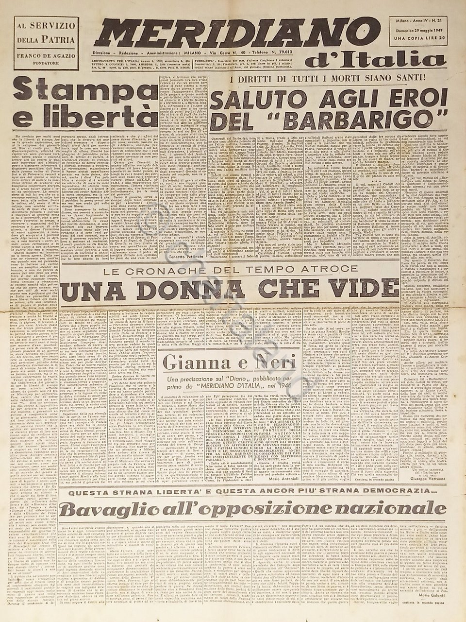 Giornale - Meridiano d'italia N. 36 - 1949 La tragedia dei politici