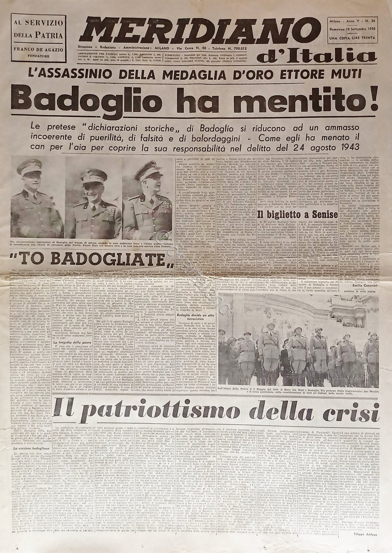 Giornale - Meridiano d'Italia N. 36 - 1950 Badoglio ha mentito!