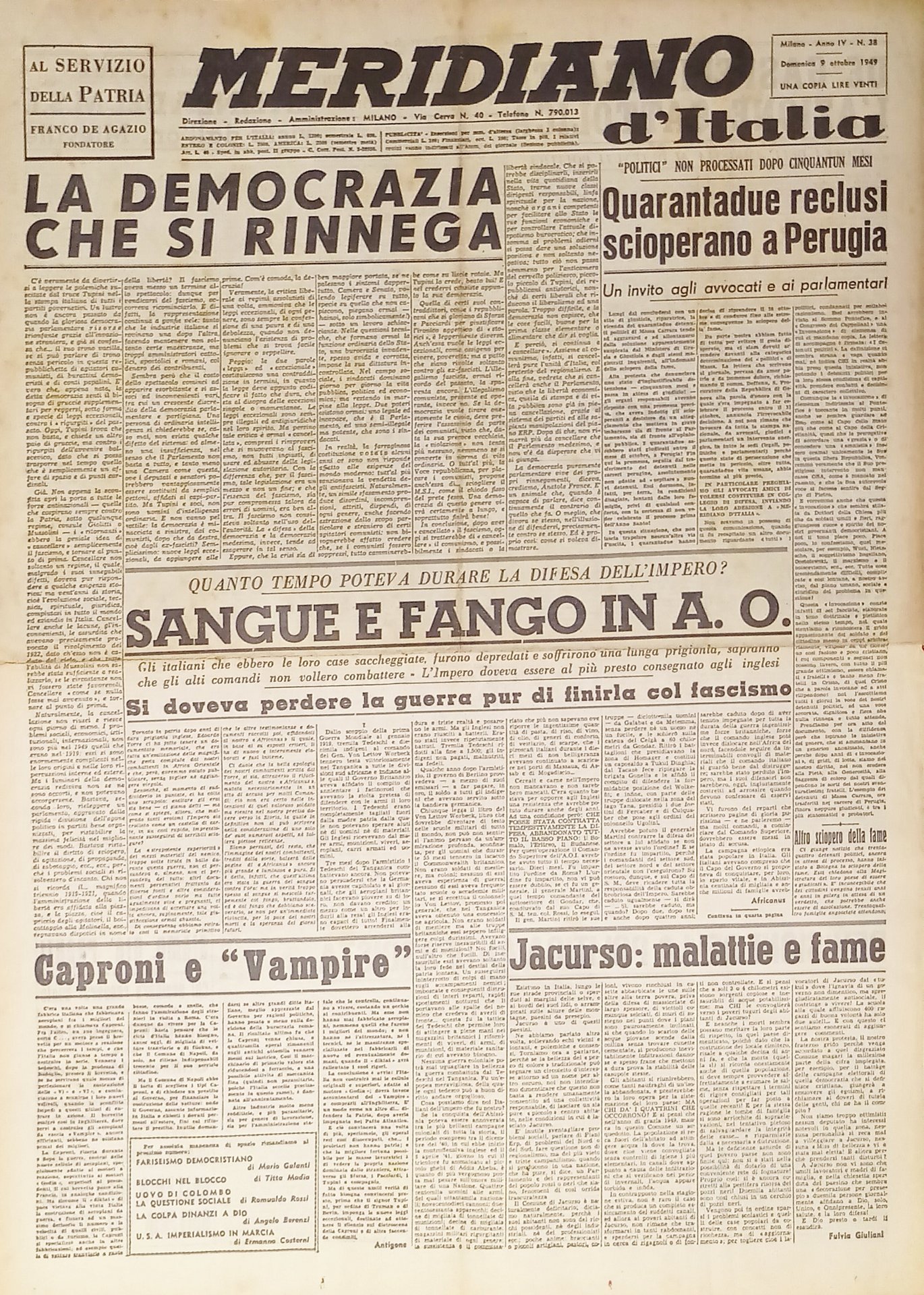 Giornale - Meridiano d'italia N. 38 - 1949 Sangue e fango in A. O. | Libri antichi e moderni |