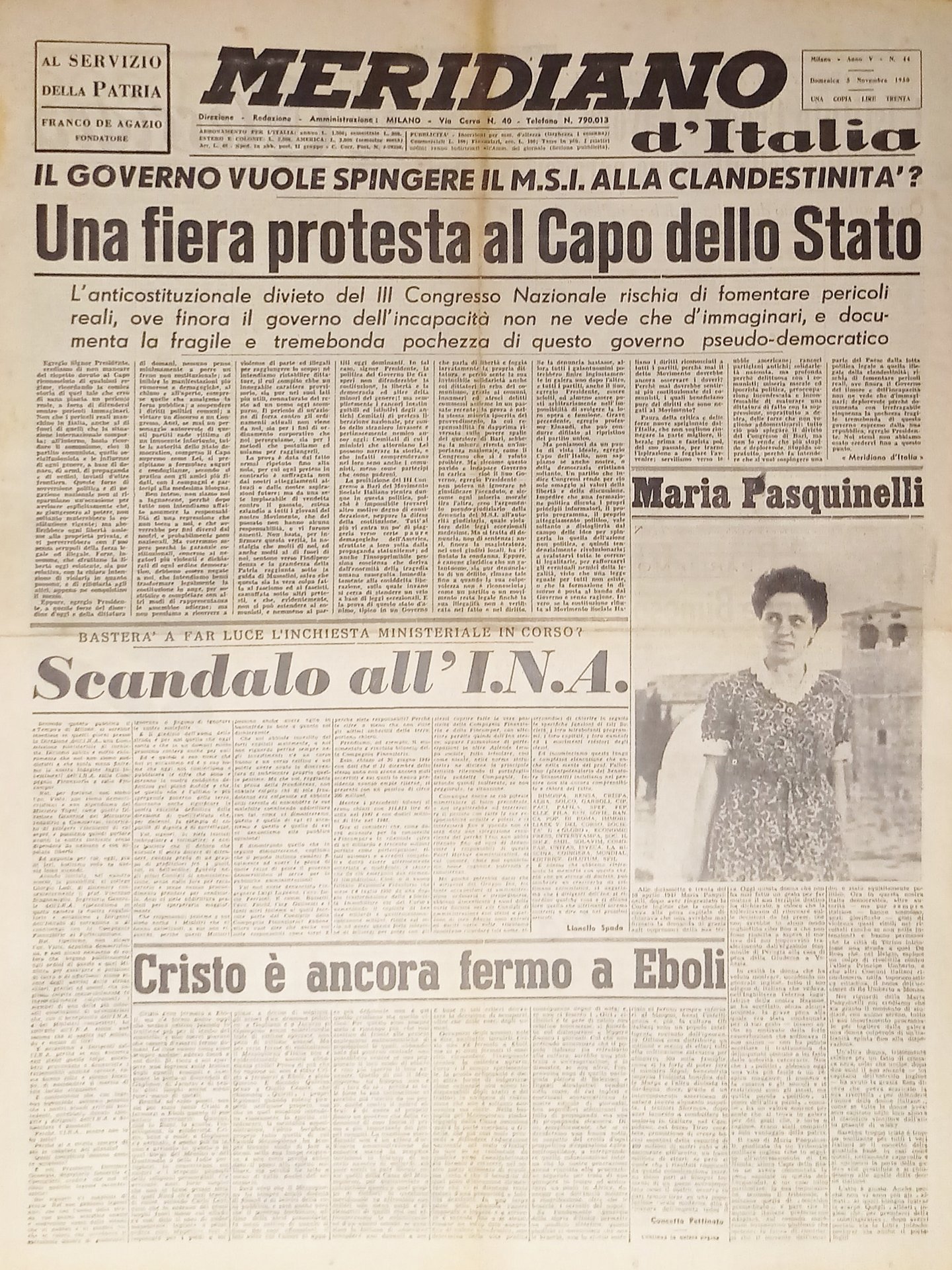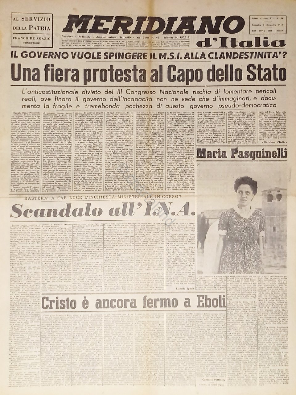 Giornale - Meridiano d'italia N. 44 - 1950 Maria Pasquinelli