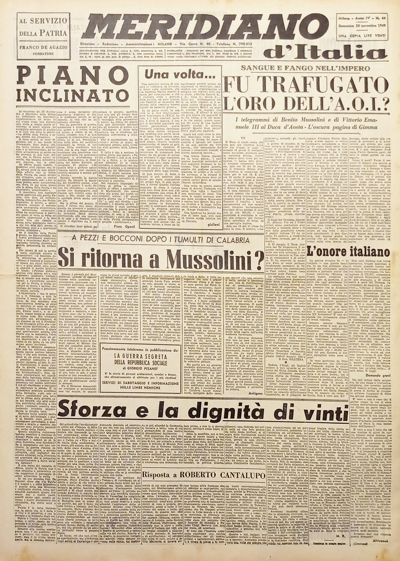 Giornale - Meridiano d'italia N. 44 - Si ritorna a Mussolini? - 1949