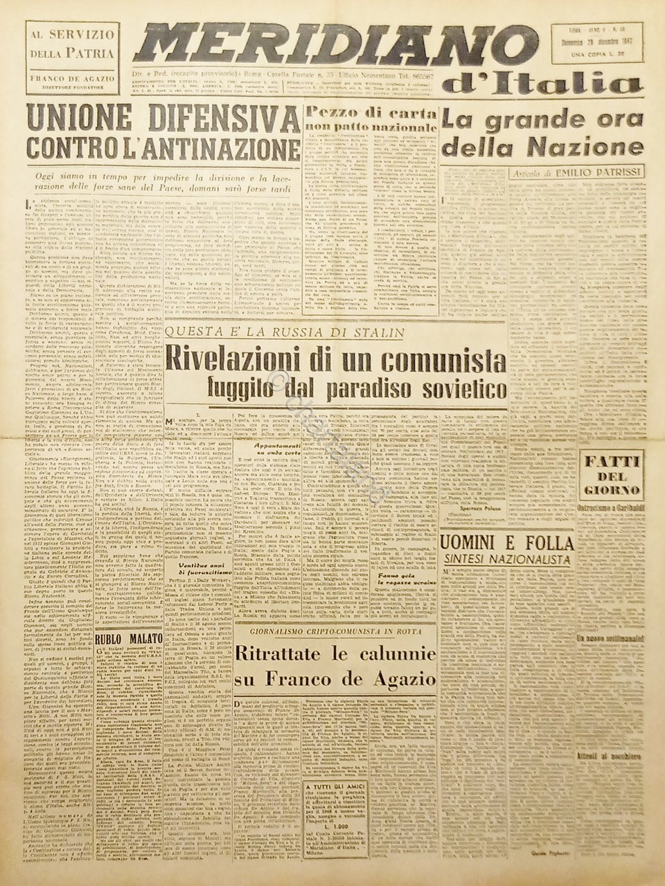 Giornale - Meridiano d'italia N. 46 - Unione difensiva contro l'antinazione 1947