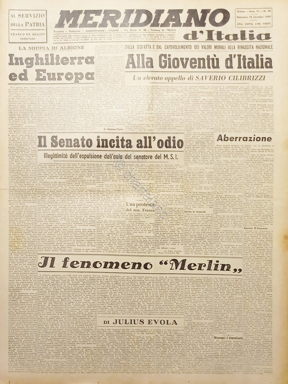Giornale - Meridiano d'italia N. 48 - Inghilterra ed Europa - 1949 | Libri antichi e moderni |