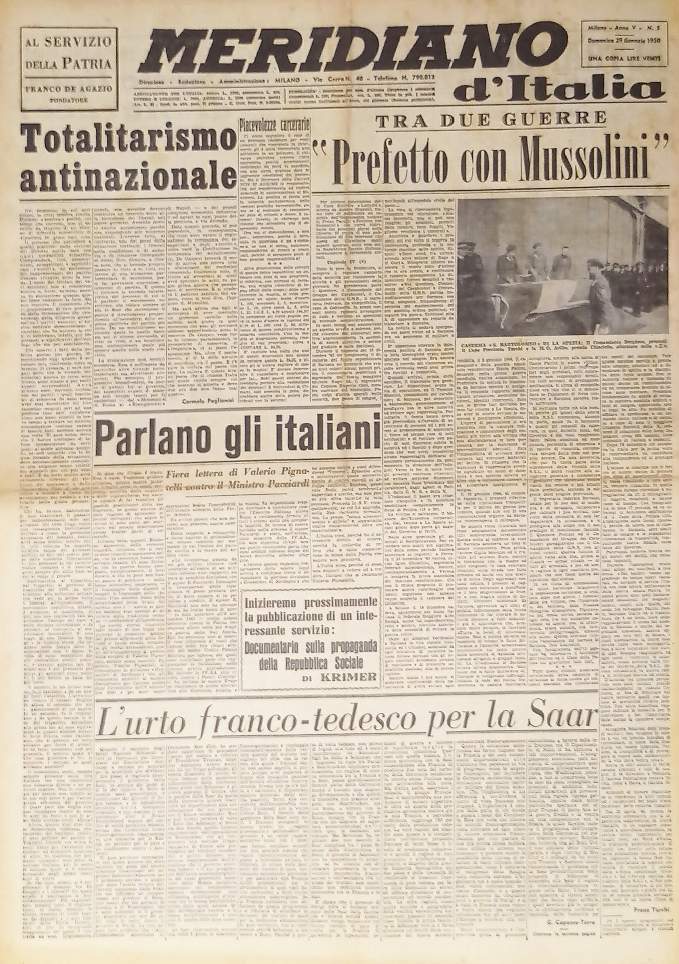 Giornale - Meridiano d'italia N. 5 - 1950 Prefetto con Mussolini