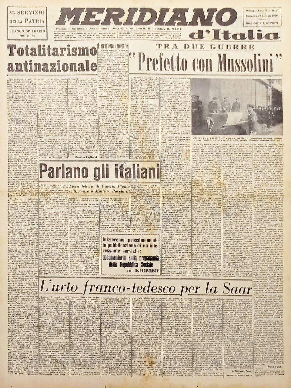 Giornale - Meridiano d'italia N. 5 - Prefetto con Mussolini - 1950