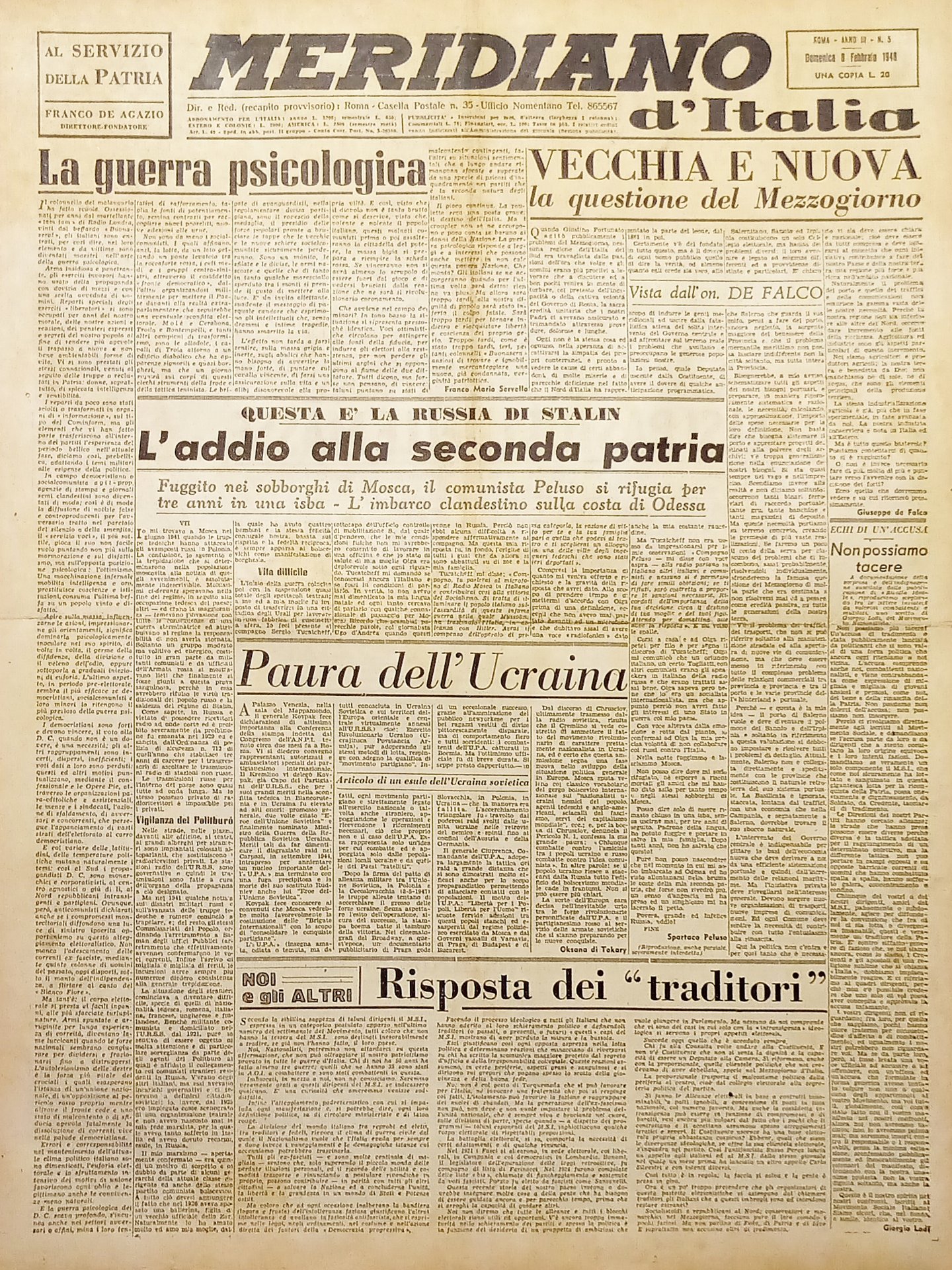 Giornale - Meridiano d'italia N. 6 - L'Addio alla seconda patria - 1948