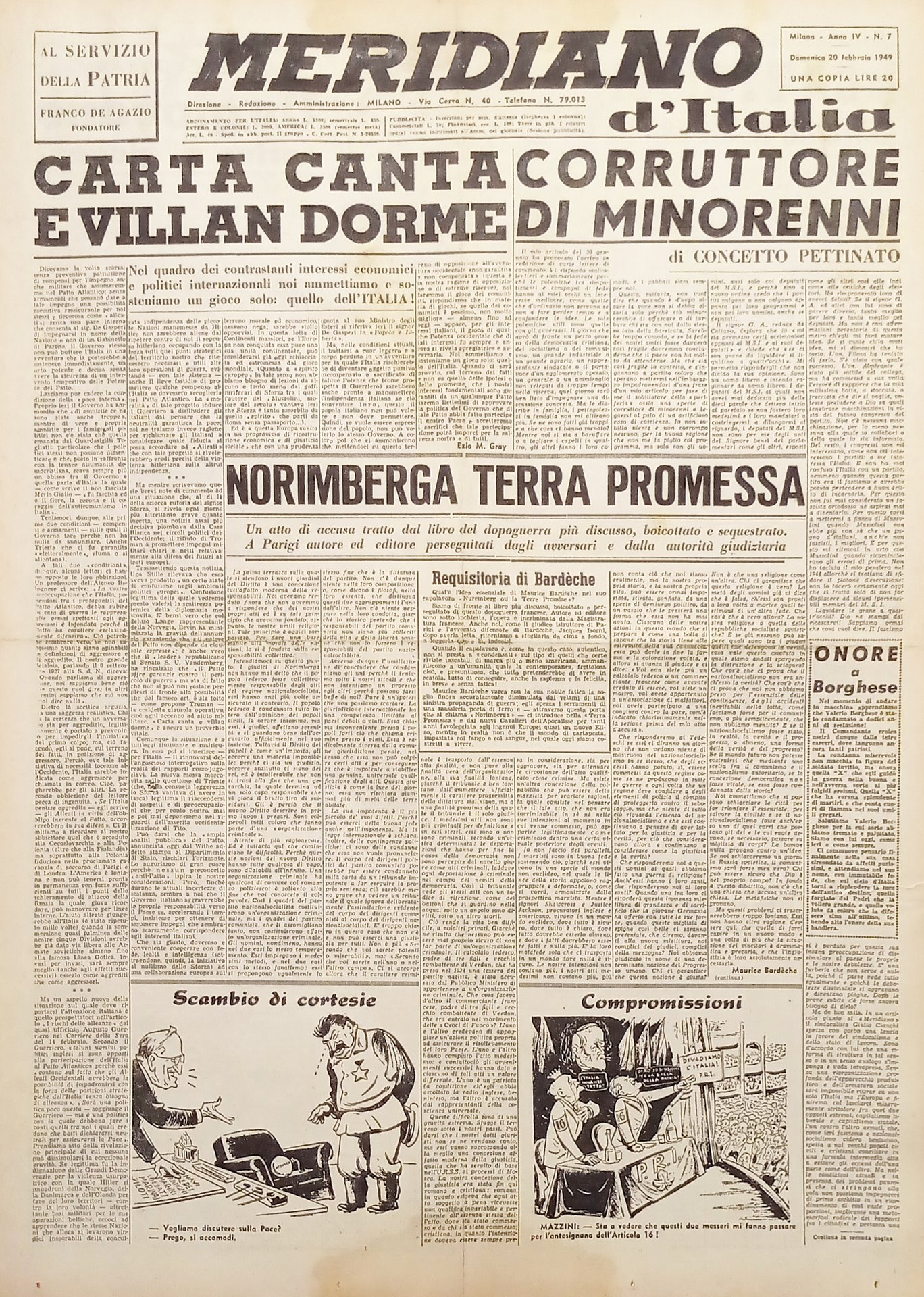 Giornale Meridiano d'italia N. 7 - Carta canta e villan dorme - 1949 | Libri antichi e moderni |