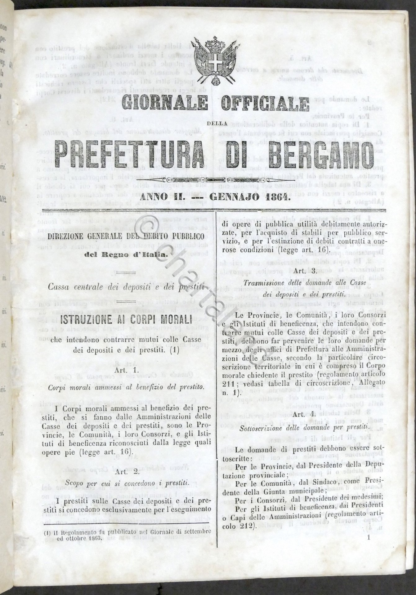Giornale Officiale della Prefettura di Bergamo - norme e decreti anno II - 1864
