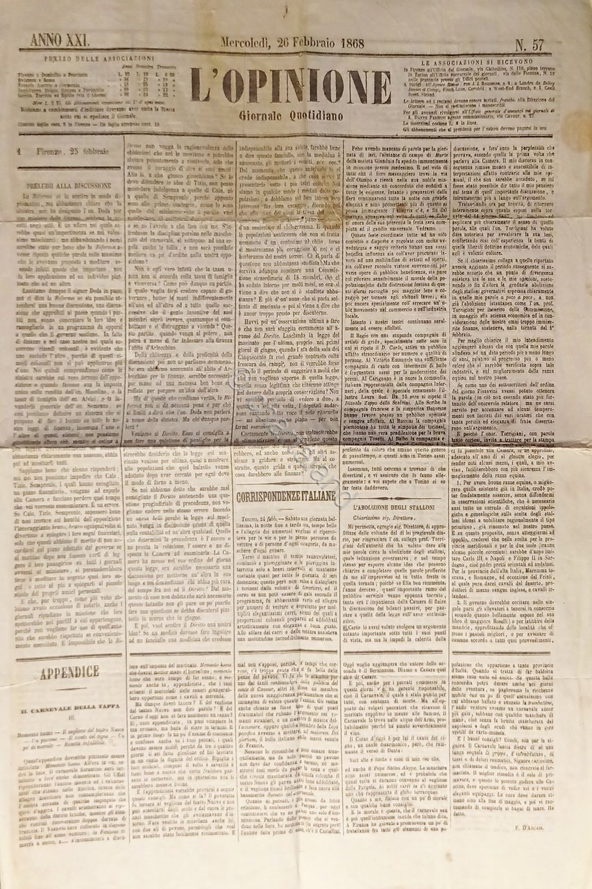 Giornale Quindicinale - L'Opinione N. 57 - 1868 | Libri antichi e moderni |