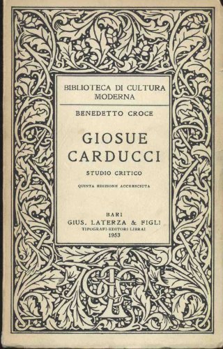 BENEDETTO CROCE Giosuè Carducci. Studio critico. , LATERZA 1953, BIBLIOTECA DI CULTURA MODERNA N. 95 128 205 220 (2176)