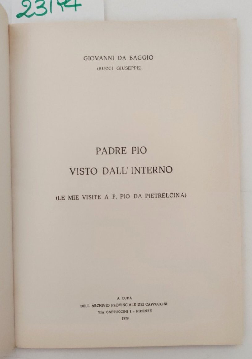 Giovanni Da Baggio Padre Pio visto dall'interno 1970 Archivio provinciale dei cappuccini | Libri antichi e moderni | Giovanni Da Baggio