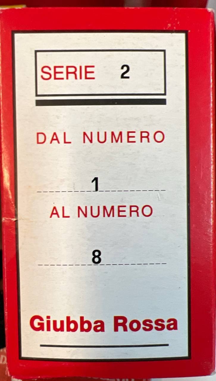 Giubba Rossa. Seconda serie (da n° 1 a 8). Foto rappresentativa della serie descritta. Cofanetto con segni d'uso. Buone condizioni degli albi. Copertine flessibili, con lievi segni d'uso. Pagine in buono stato. paperback s.n. Buono (Good) .