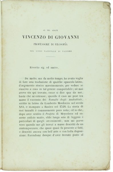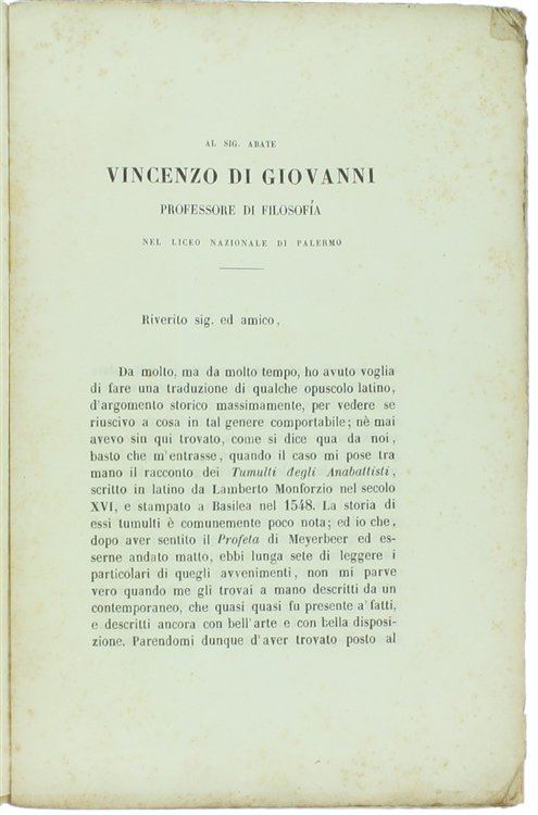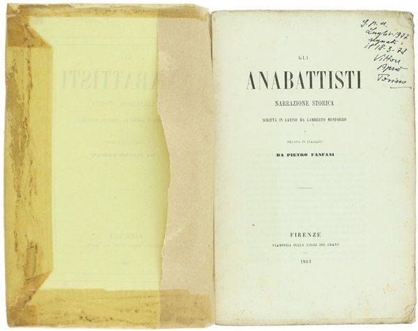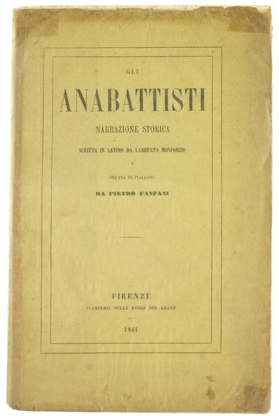 GLI ANABATTISTI. Narrazione storica scritta in latino e recata in italiano da Pietro Fanfani. | Libri antichi e moderni | Monforzio Lamberto.