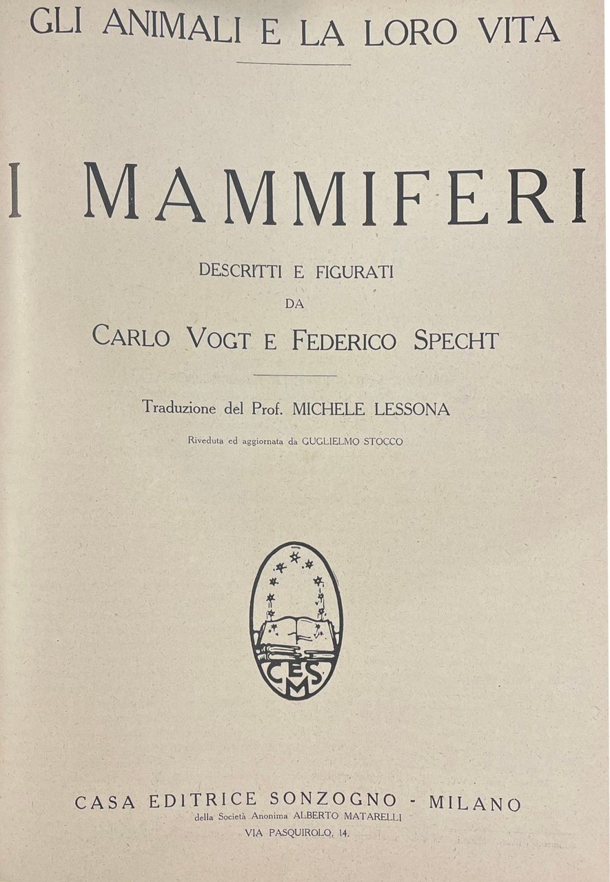 GLI ANIMALI E LA LORO VITA. I MAMMIFERI | Libri antichi e moderni | VOGT CARLO - SPECHT FEDERICO, ,VOGT CARLO - SPECHT FEDERICO