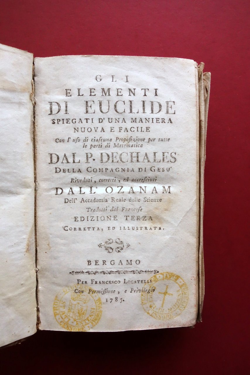 Gli Elementi di Euclide spiegati dal P. Dechales Locatelli Bergamo 1785 Raro | Libri antichi e moderni |