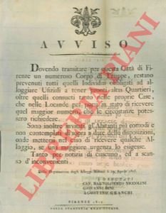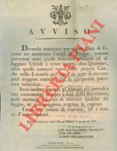 Firenze, 1815, 19 aprile, Avviso di cm. 31 x 42, a firma Niccolini, Dini, Granchi, con stemma xil.