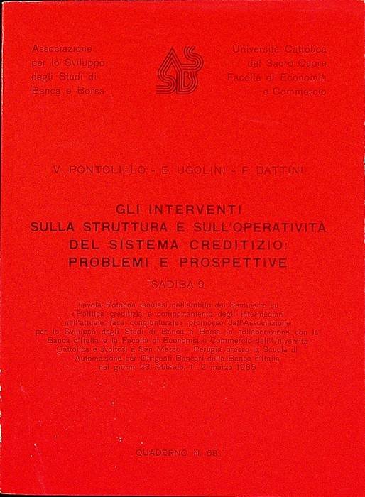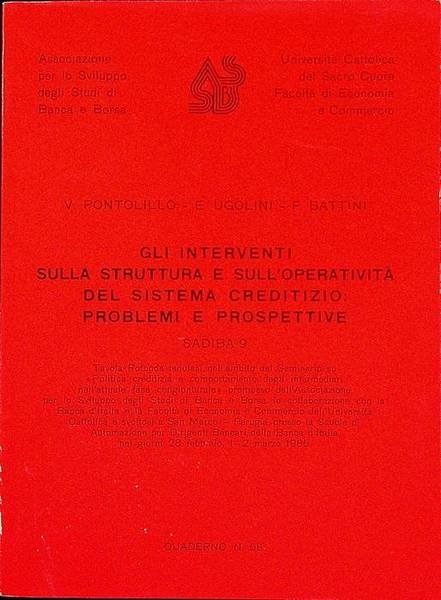 Gli interventi sulla struttura e sull'operatività del sistema creditizio: problemi e prospettive: SADIBA 9: tavola rotonda tenutasi nell'ambito del seminario su ”Politica creditizia e comportamento degli intermediari nell'attuale fase congiunturale” . Perugia . 28 febbraio, 1-2 marzo 1985. | Libri antichi e moderni | Pontolillo, Vincenzo - Ugolini, Ernesto - Battini, Fausto.
