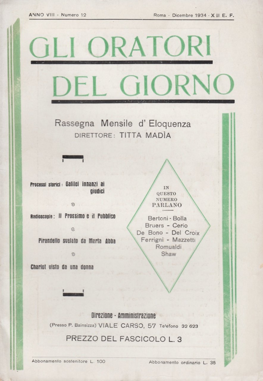 Gli oratori del giorno. Rassegna mensile d'eloquenza. Anno VIII - Numero 12. Dicembre 1934
