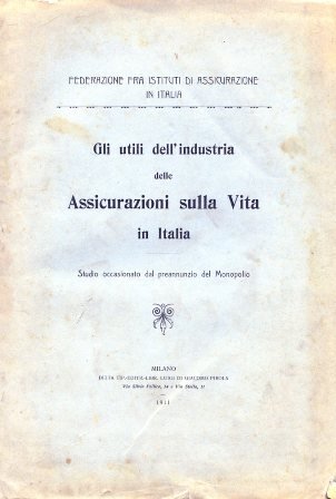 Gli utili dell'industria delle Assicurazioni sulla vita in Italia. Studio occasionato dal preannunzio del Monopolio | Libri antichi e moderni | Sestilli Gino