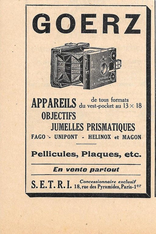 Goerz. Appareils, objetifs, jumelle prismatiques. Pubblicita 1926