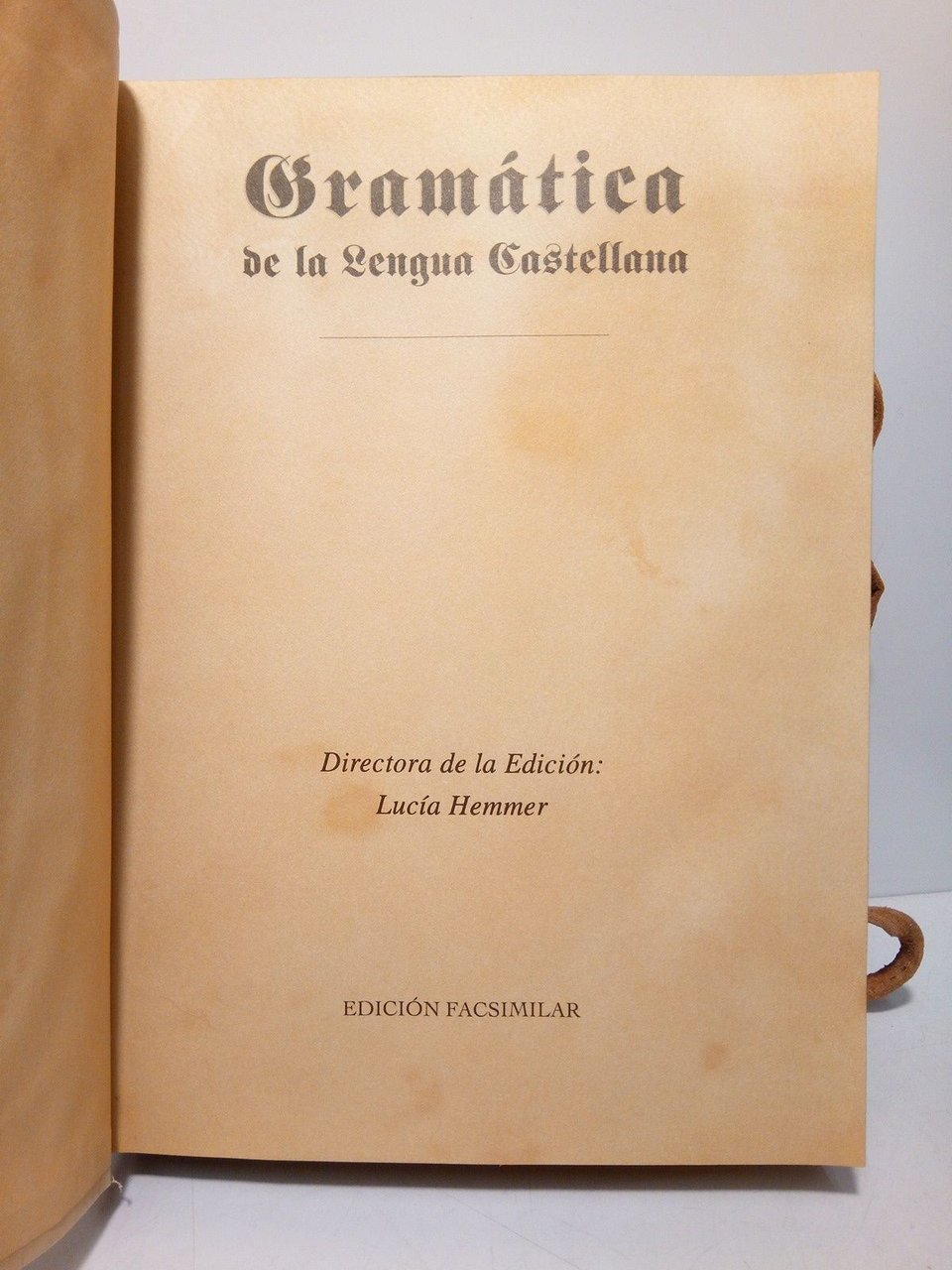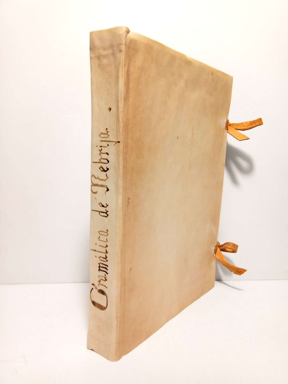 [Edición facsímil y transcripción].- Madrid: Eurohemmer Editorial S.L., 1992.- [300 p. sin numerar]: Ilustrado con 10 preciosas láminas a todo color reproduciendo pinturas de Mayte Spínola exclusivas para este libro; 4º (22,2 x 15,9 cm); Excelente impresión sobre papel de gran calidad imitando vitela, que incluye el facsimil en letra gótica y la transcripción en letras romanas actuales; Enc. original en Vitela auténtica, lomo rotulado a tinta y cintas de piel para cierre del libro.- Esta edición ha sido elaborada en Madrid, coicidiendo con el Quinto Centenario de la primera impresión en Salamanca de la Gramática de Nebrija [18 de agosto de 1492]. La edición consta de quinientos ejemplares numerados, siendo este el ejemplar Nº 066. RARO.* Excelente estado. LITERATURA ESPAÑOLA Y FILOSOFÍA DE LOS SIGLOS XVI Y XVII