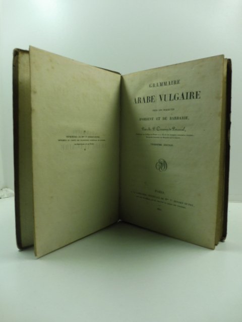 In 8 piccolo, pp. XV + (1) + 172 + (10). Usuali fioriture alle cc. Qualche annotazione a lapis n.t. Cart. coeva. Terza ediz. di questa grammatica araba redatta da Armand Pierre Caussin de Percevale (1795-1871), orientalista e lessicografo francese. Fu professore di arabo all'Institut Nationale des Langues et Civilisations Orientales di Parigi e in seguito al College de France.