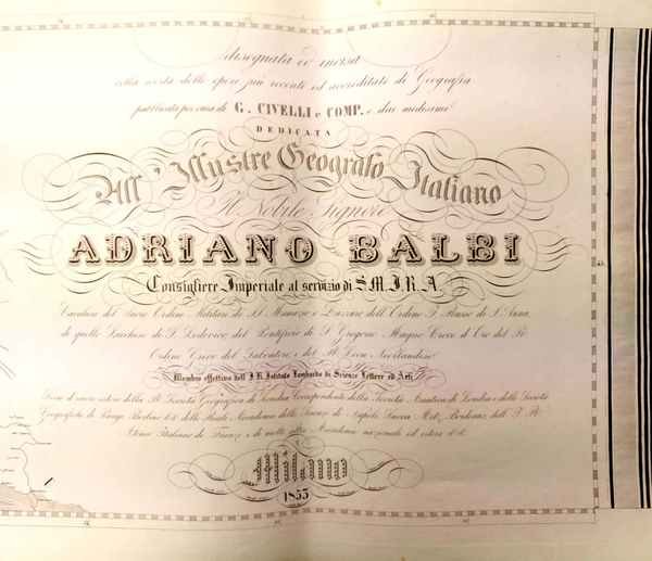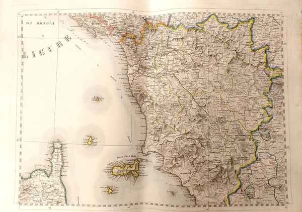 Serie di 28 tavole incise in rame di mm 59 x 44 su carta di cellulosa a comporre una grande carte dell'Italia. Confini colorati. Ottimo esemplare. Questa notevole carta venne dedicata dall'editore ad Adriano Balbo.