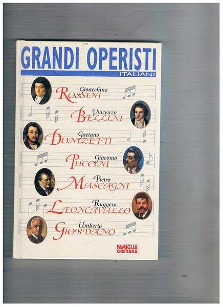 Grandi operisti italiani: Gioacchino Rossini, Vincenzo Bellini, Gaetano Donizetti, Giacomo Puccini, Pietro Mascagni, Ruggiero Leoncavallo, Umberto Giordano. Presentazione di Carlo Fontana. Supplemento a Famiglia Cristiana n° 50 del 18-12-1996.