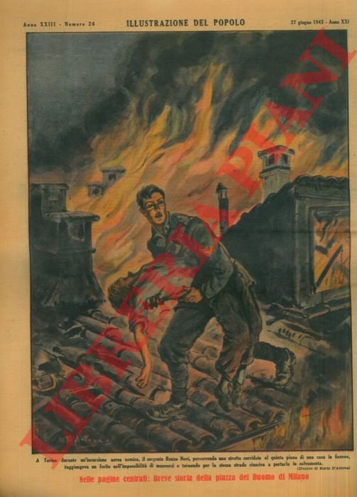 Torino, 1943, 13 giugno, copertina illustrata a colori in fascicolo originale completo di pp. 12 de “Illustrazione del popolo" - Supplemento della ”Gazzetta del Popolo" .