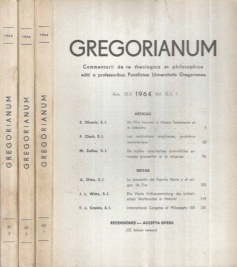 Gregorianum Anno 1964 Vol. XLV 1-2-3 | Libri antichi e moderni |
