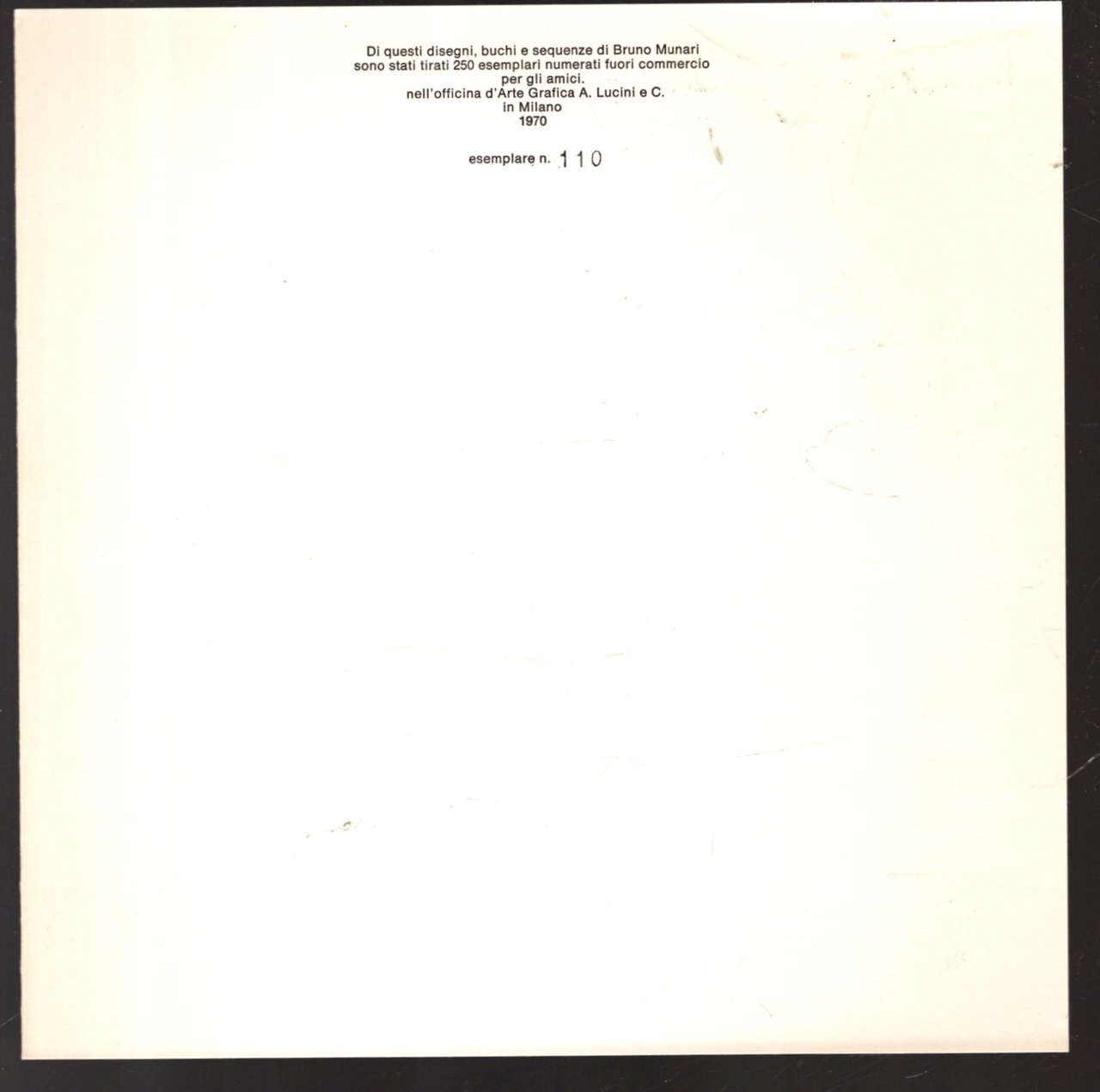 TIRATURA 250 ESEMPLARI numerati ESEMPLARE N. 110 AD PERSONAM AUTOGRAFO