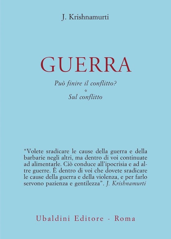 "Siamo noi i responsabili, ognuno di noi, della guerra. La guerra è il prodotto finale della nostra vita quotidiana, è causata dai nostri pensieri, sentimenti e atti quotidiani. Proiettiamo ciò che siamo nei nostri rapporti lavorativi, sociali, religiosi; come noi siamo, così è il mondo". Con queste parole, nel giugno del 1945, Krishnamurti si rivolgeva al pubblico di Ojai, mettendo in luce le cause dei conflitti più sanguinosi e distruttivi tra gli esseri umani. Attraverso l'attenta osservazione e l'esame interiore, Krishnamurti rileva la difficoltà umana di comprendere come l'azione guidata dal pensiero, che è necessariamente fondato sulle esperienze passate e sulla memoria selettiva, è sempre destinata a causare conflitti nelle relazioni, sia tra due persone sia, in scala più grande, tra gruppi di individui che definiamo 'nazioni'. In modo evidente viviamo in un mondo che non ha pace. La politica, la gerarchia cristiana, gli hindu, i buddhisti e i musulmani parlano di pace, ma di fatto non c'è. I governi, le guide religiose, i movimenti per la pace non sono stati in grado di portare unità e pace. È dunque ancora possibile usare questa parola? In quali modi può realmente aver inizio uno stato di pace? Krishnamurti indica che soltanto la pace della mente, in ognuno di noi, può segnare la fine di ogni conflitto. È questa l'unica pace, autentica, possibile, non soltanto in noi stessi ma anche con chi ci è vicino e con il mondo, con l'ambiente, con la natura. È una pace che affonda le sue radici in profondità, che è incrollabile, non superficiale e passeggera. E inevitabilmente si riverbera nel mondo esterno. I due testi qui presentati raccolgono i discorsi pubblici sul tema del conflitto tenuti dall'autore in diverse parti del mondo nell'arco di quarant'anni, e anche numerosi dialoghi in forma di domande e risposte a singoli interlocutori, caratterizzati da una più disinvolta informalità che Krishnamurti particolarmente apprezzava. Introduzione a "Può finire il conflitto?" di David Skitt.