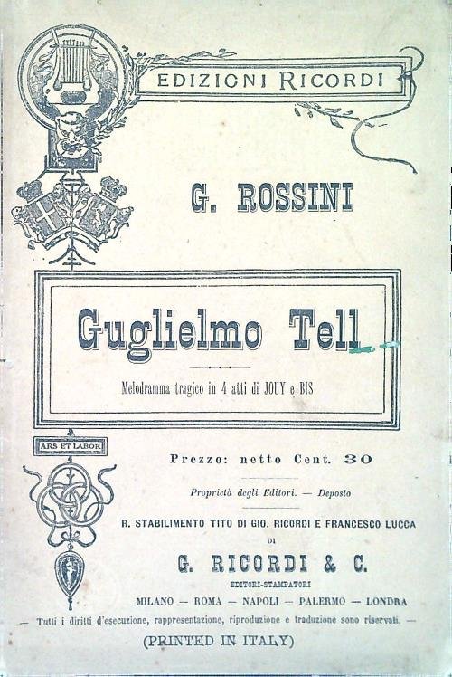 Guglielmo Tell. Melodramma tragico in 4 atti | Libri antichi e moderni | Rossini, G.