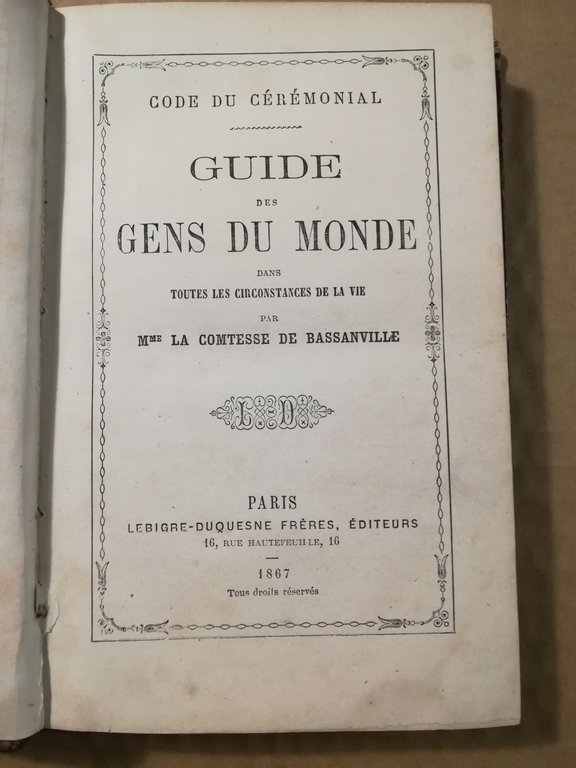 Guide des Gens du Monde dans toutes les circonstances de la vie. Code du Cerimonial | Libri antichi e moderni | BASSANVILLE, Comtesse de
