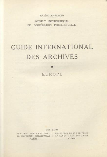 GUIDE INTERNATIONAL DES ARCHIVES. I: EUROPE. | Libri antichi e moderni | Société Des Nations.