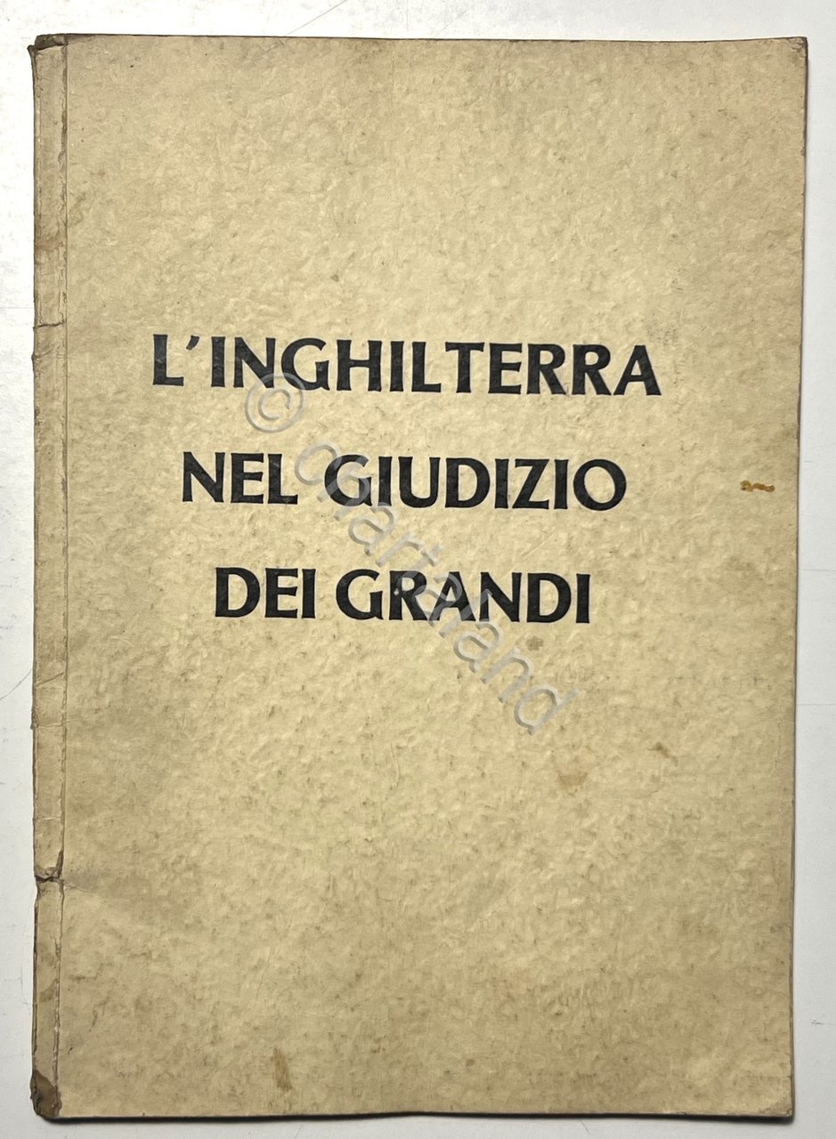 H. Eckert - L'Inghilterra nel giudizio  dei Grandi - ed. 1941 Testo in lingua italiana. Pagine 63 con illustrazioni. Copertina morbida. Condizioni buone con segni del tempo come da foto.