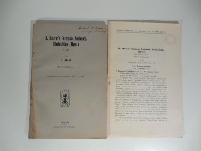 H. Sauter'S Formosa-Ausbeute Chalcididae (Hym.) von L. Masi | Libri antichi e moderni | Masi L.